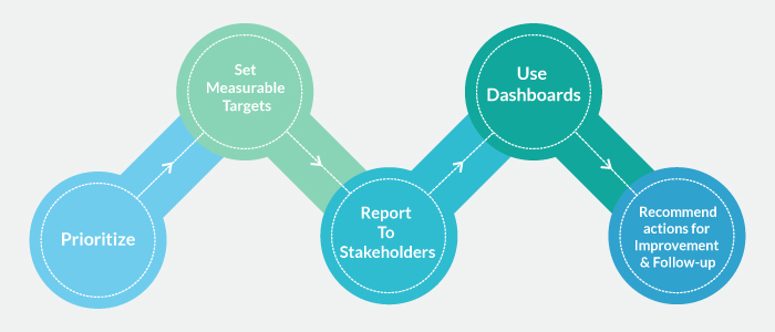 Performance measurement starts with setting targets or goals and assigning KPIs (Key Performance Indicators) which are measurable. While setting KPIs for each target, it is also essential to anticipate how the achievement of the target will be tracked.